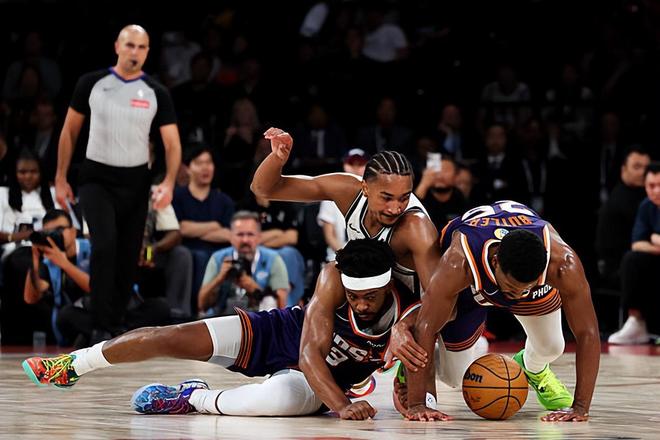 NBA中国赛太阳加时132-127篮网,曾凡博首秀0出手1抢断,布克18分